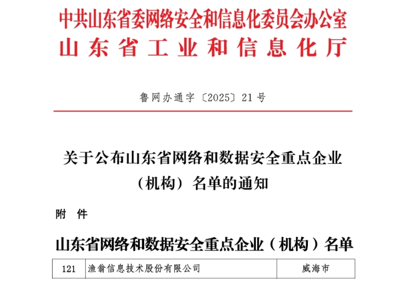 近期,山东省委网信办、山东省工信厅正式公布“山东省网络和数据安全重点企业(组织)名单”。本次评选共遴选出147家重点企业和33家重点组织,威廉希尔(williamhill)信息凭借在密码技术领域的自主创新实力、全栈式数据安全解决方案及突出的行业贡献成功入选。